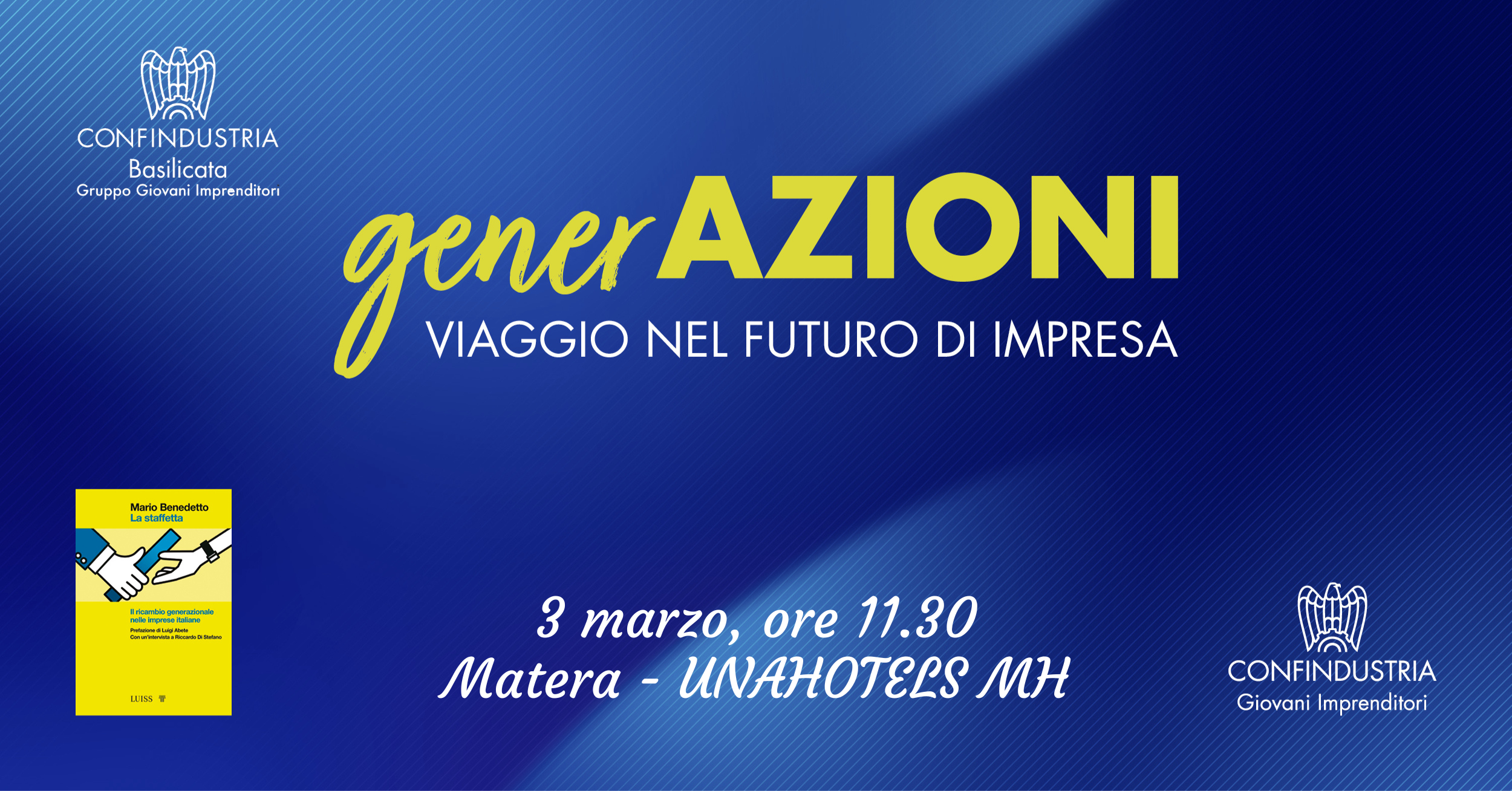 E' partito il nuovo progetto "GenerAZIONI", prima tappa da Matera, dedicato al passaggio generazionale dei Giovani Imprenditori di Confindustria, realizzato in collaborazione con Luiss Business School.
